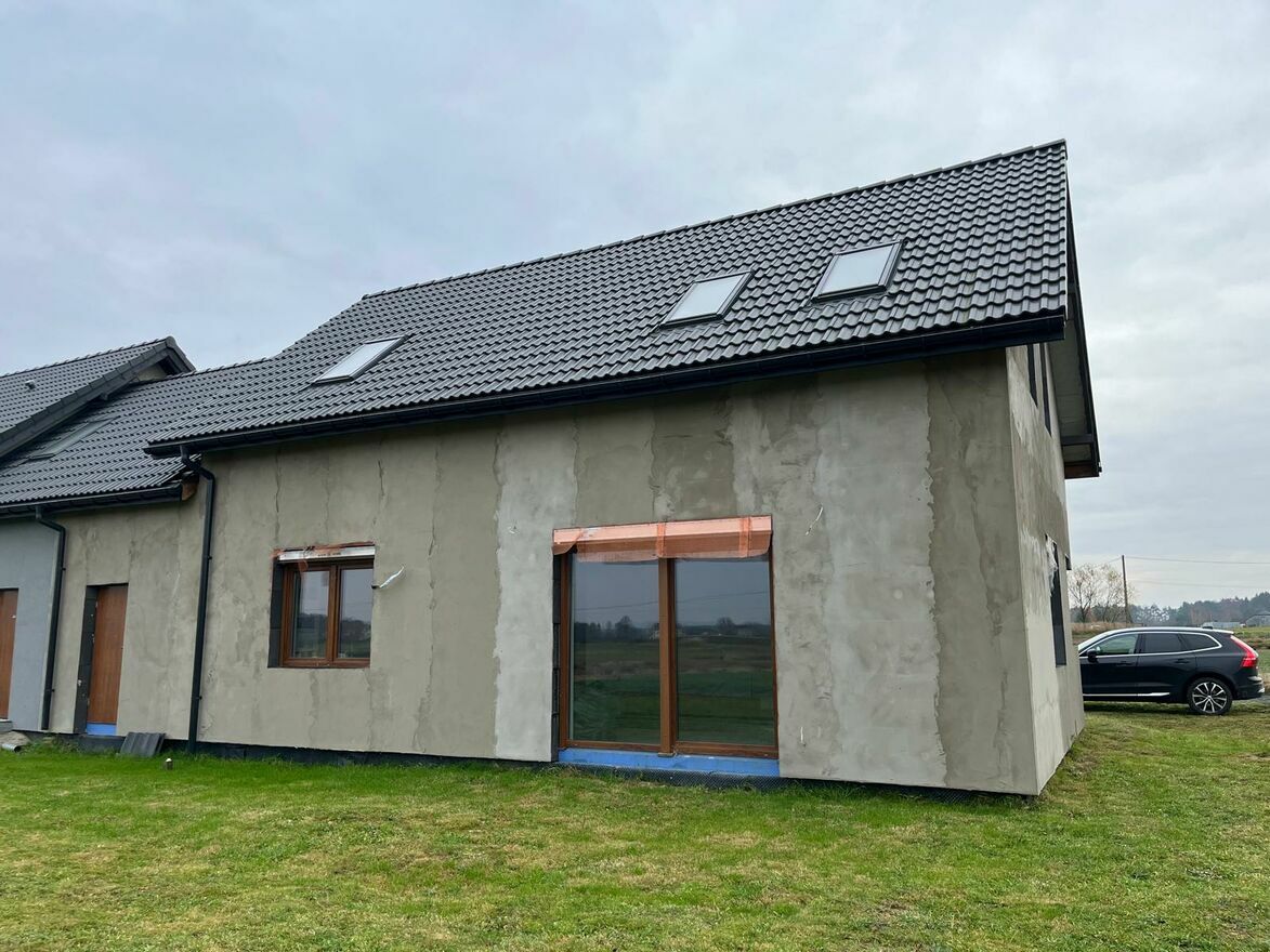 Na sprzedaż dom w zabudowie bliźniaczej połączony garażem, w malowniczej okolicy Orzesza Zgoń przy ulicy Wiśniowej. Dom o powierzchni 125,18 m², położony na narożnej działce o powierzchni 580 m².Budynek, w stanie surowym zamkniętym na pewnym etapie zaawansowania wewnątrz oraz elewacji zewnętrznej ~ stan widoczny na zdjęciach oraz filmie (15-11-2025). Dom został zaplanowany pod ogrzewanie pompą ciepła + ogrzewanie podłogowe, częściowo wykonane, oraz pod system rekuperacji również częściowo już wykonany. Wykonane zostały już częściowo prace w kierunku stanu deweloperskiego; instalacja elektryczna subiektywnie około 80%, ściany otynkowane około 75%, kanalizacja rozpoczęta, drzwi zewnętrzne, brama garażowa automatyczna. Ocieplenie w większości wykonane - styropian + siatka i zaprawa, rolety zewnętrzne, elektryczne zainstalowane. Zabezpieczono również materiały budowlane do kontynuowania inwestycji min: styropian, wełna, wieszaki do poddaszy , profile aluminiowe, siatka do tynkowania, rury do rekuperacji, materiał do wykonania ogrzewania podłogowego i inne.