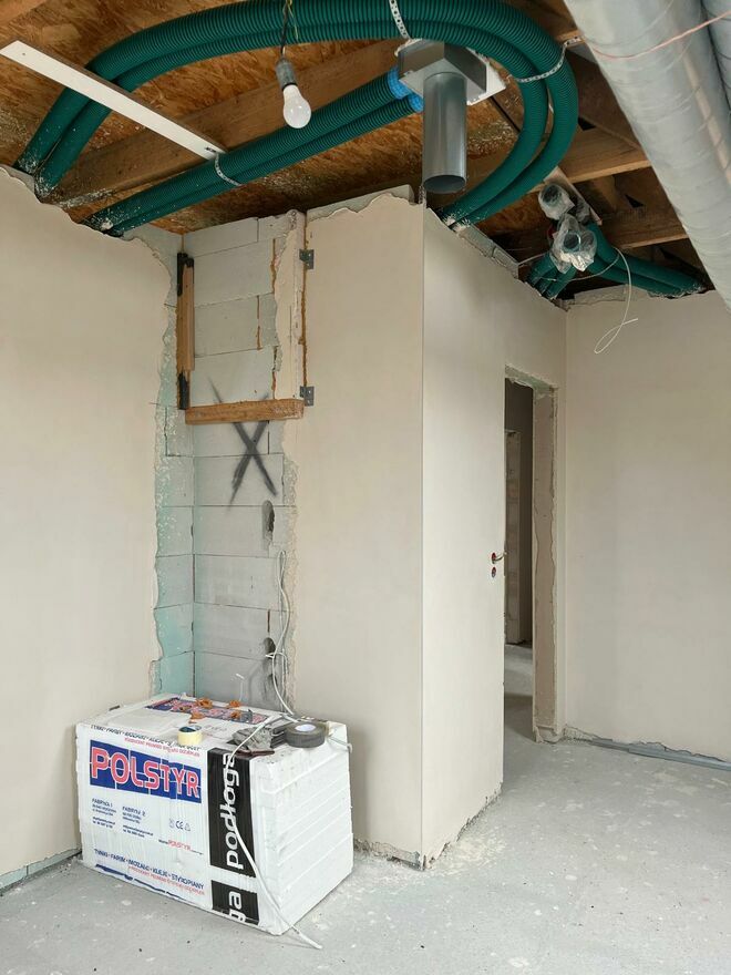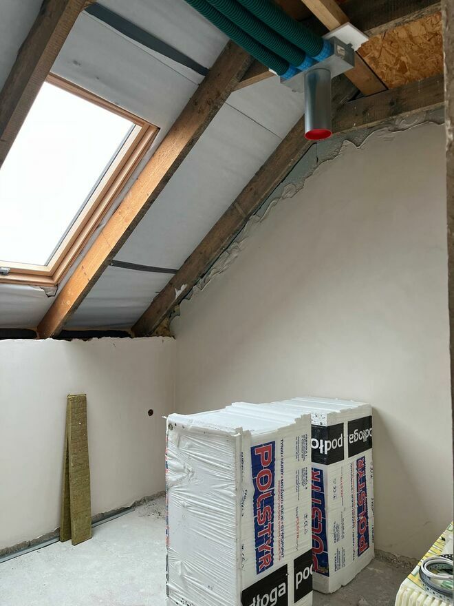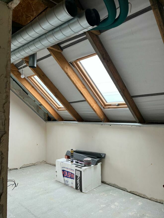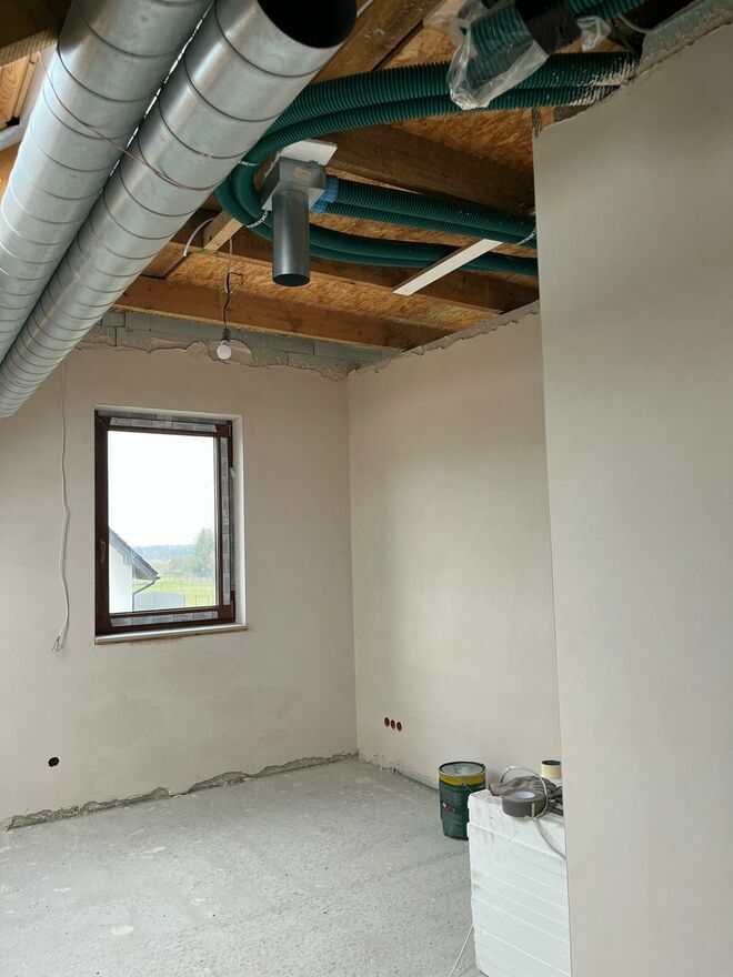 częściowo rozprowadzona instalacja pod rekuperację, na stanie materiały do dokończenia instalacji (bez rekuperatora)